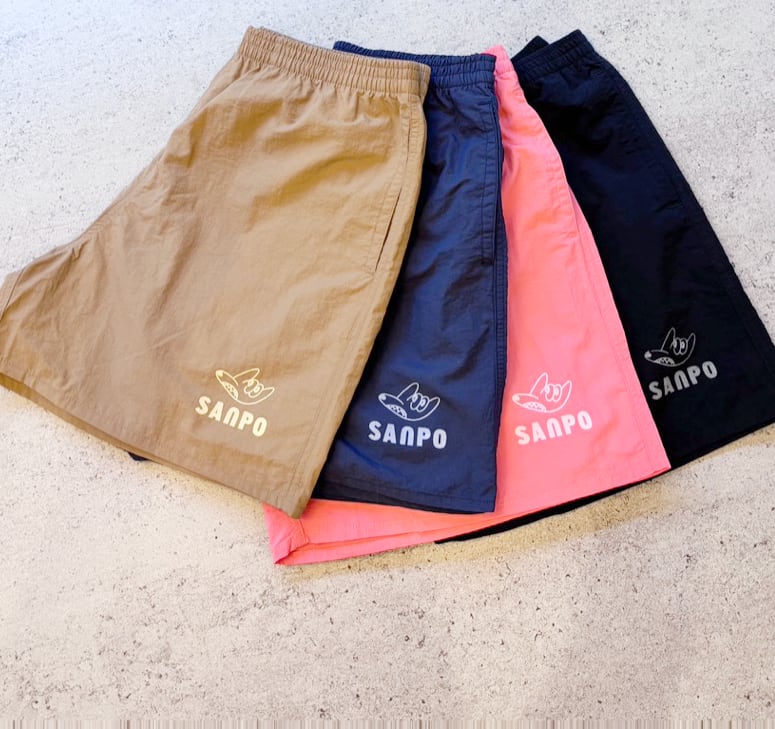 SANPO!のナイロンショーツは、軽快な着心地と撥水性があり、この夏の散歩やアウトドアに最適です。